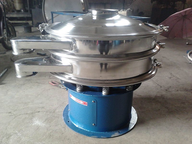 振动筛分机直径为800型一层二出口,接触物料接触为304不锈钢材质,底座为Q235普碳钢材质,子母双层网结构网架。振动筛分机是所有振动筛分设备类产品的总称,确切的讲圆形的振动筛根据国家相关标准叫“旋振筛”,由于其振动运转原理很多企业也称之为“三次元振动筛分过滤机”。