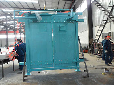 矿用无压风门制作方式和结果原理 套对开式无压风门有两道组成,主要包括2组门框、4个门扇、2组配重和一套风门机械闭锁装置或风门气动闭锁器等部件,如果想省劲提高矿用风门的智能化自动化水平,则在原先手动无压风门的基础上安装由红外线感应器或光控传感器、ZMK-127风门自动控制装置主机、气缸或油缸、电气控制箱、风门开闭状态传感器等部件组成的风门自动控制系统即可实现了质的飞跃,由此而成为电控气动无压风门或电动液压(电液)全自动控制风门、纯电动推杆风门等。
