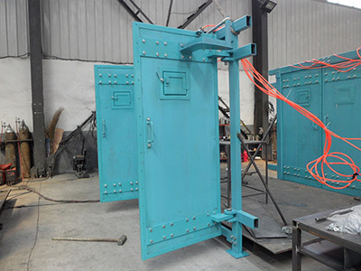 在人们的印象中曾经的风门是门扇为一整个门板焊接成的,人或车在过门时不能观察前后的情况,存在较大的安全隐患,经过改进咱们在门扇的上部分加装了防爆玻璃的可视风窗,不仅方便了观察还在一定程度上降低了风门的总重量,为安装提供了例利。