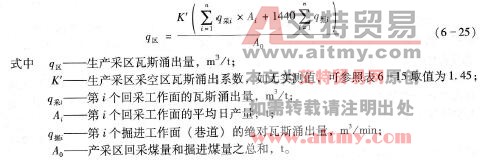 采区瓦斯涌出量系采区内所有回采工作面、掘进工作面(巷道)和采空区瓦斯涌出量之和,按下式计算: