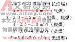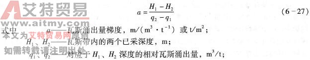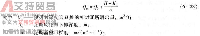 已知瓦斯涌出量梯度和瓦斯风化带下界深度时,就可用式(6 - 28)预测相对瓦斯涌出量: