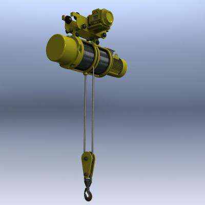 轨道靠吊挂组件通过锚杆或十字梁固定在巷道的顶板上。整机沿轨道行走,起吊装置将重物从地面吊起,启动行走电机,电机将动力传递给减速箱,经三级减速后传递到行走齿轮上,行走齿轮与轨道上的齿条相啮合,从而驱动其沿轨道行走,达到运送物料的目的。
